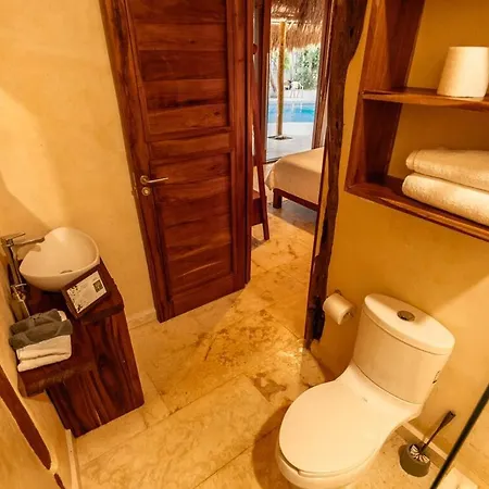 Desde la propiedad se puede admirar la vista al jardín. La villa Kasa Uhmay Tulum incluye un cuarto de baño con una bañera de hidromasaje, un inodoro separado y una ducha. Además, para tu comodidad, dispone de secador de pelo y toallas.
